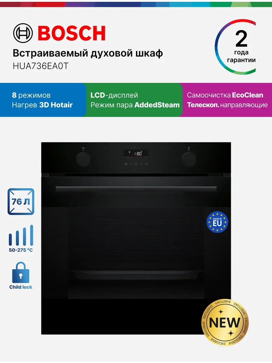 Духовой шкаф электрический Bosch HUA736EA0T черный
