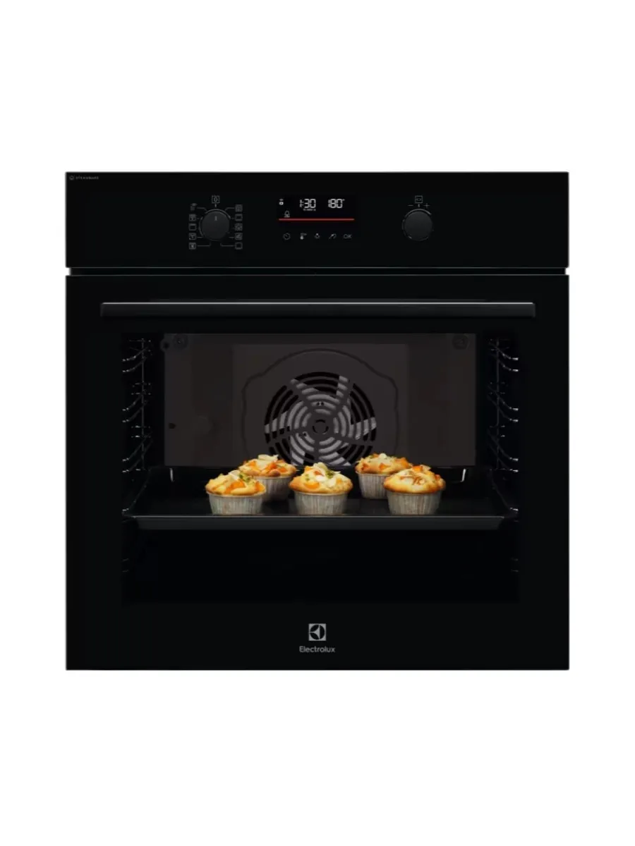 Духовой шкаф Electrolux EOD6F77WZ черный, электрическая духовка, объём 72л, покрытие: эмаль легкой очистки, программ духовки: 9, независимое управление, переключатели поворотные/сенсорные.