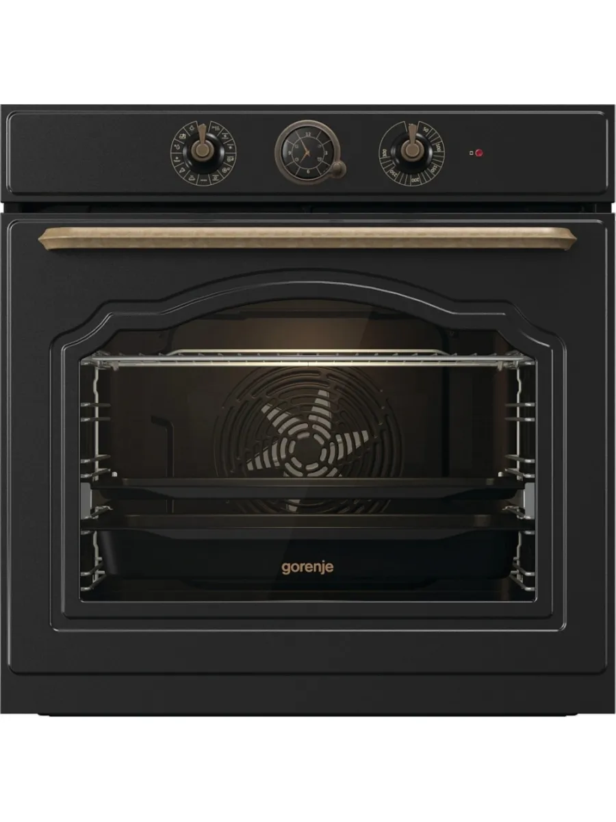 Духовой шкаф Gorenje BOS67372CLB черный, электрическая духовка, объём 77л, покрытие: пиролитическая эмаль, электрический гриль, программ духовки: 13, независимое управление, переключатели поворотные