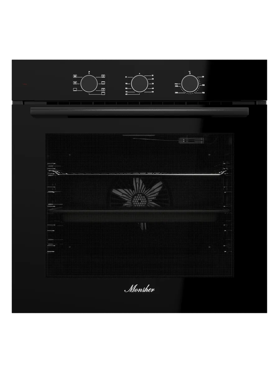 Духовой шкаф MONSHER MOE 6007 Noir, 60 см, объем 80 л, утапливаемые переключатели, механический таймер, 2 стекла в дверце, энергоэффективность А, черный