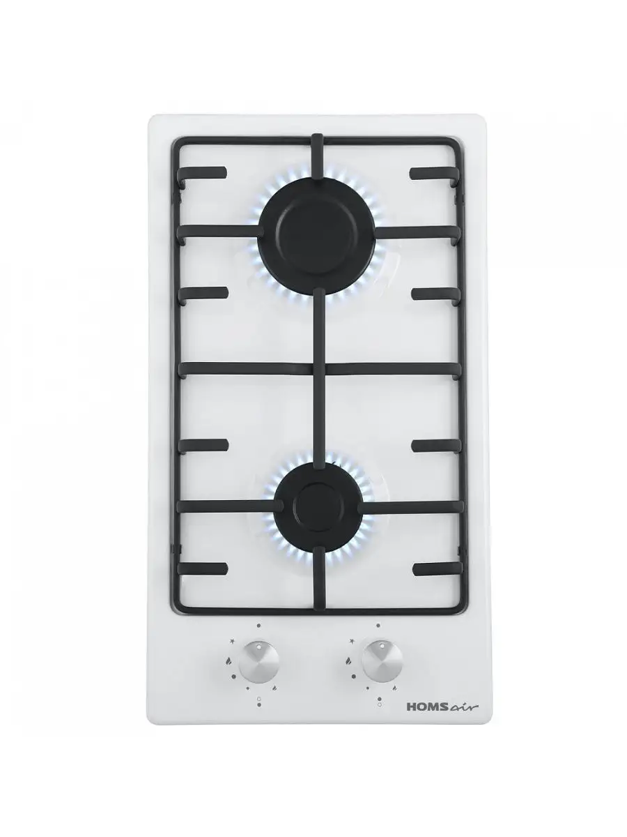 ГАЗОВАЯ ПАНЕЛЬ HOMSAIR HGE323GCWH — эффективный и надежный помощник на вашей кухне! Газ-контроль;Автоподжиг в ручке управления;Конфорки с матовыми крышками;Ручки управления — круглые пластиковые ножка — черная, крышка — хромированная;Решетка эмалированная LAMA; Конфорки ALBEK; управление — механическое; материал — металл, эмаль; 2 комфорки мощностью: 2600, 1700 Вт; Размер для встраивания 260Х485; Производство Турция; Возможность работы от магистрального и газа в баллоне.