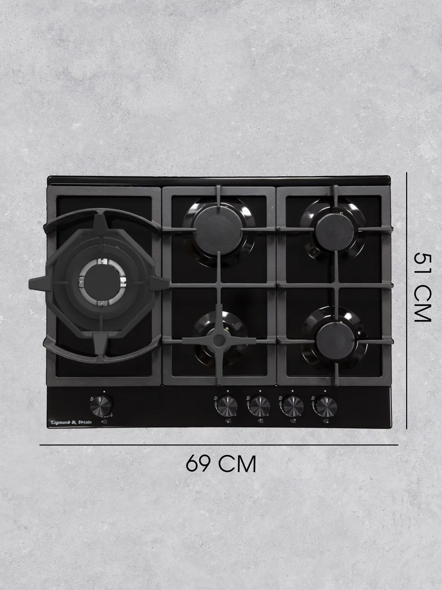 Варочная панель газовая встраиваемая Zigmund & Shtain (Зигмунд и Штайн) станет лучшим помощником на любой кухне для быстрого и качественного приготовления любимых блюд. Кухонная варочная панель выполнена из эмалированной / нержавеющей стали, что гарантирует высокую жароустойчивость и простой уход в домашних условиях. 3 чугунные решетки отличаются прочностью, не потеряют внешний вид в течение долгого срока и обеспечат устойчивость посуде любого размера. 5 конфорок разной мощности и диаметра, включая WOK-горелку, подойдут как кулинару-любителю, так и профессионалу и не подведут в любой ситуации. Опция газ-контроль гарантирует безопасность, если пламя внезапно погаснет, то подача газа будет автоматически приостановлена. Варочная поверхностьоснащена механической панелью управления, поворотными рукоятками и автоматическим электроподжигом.