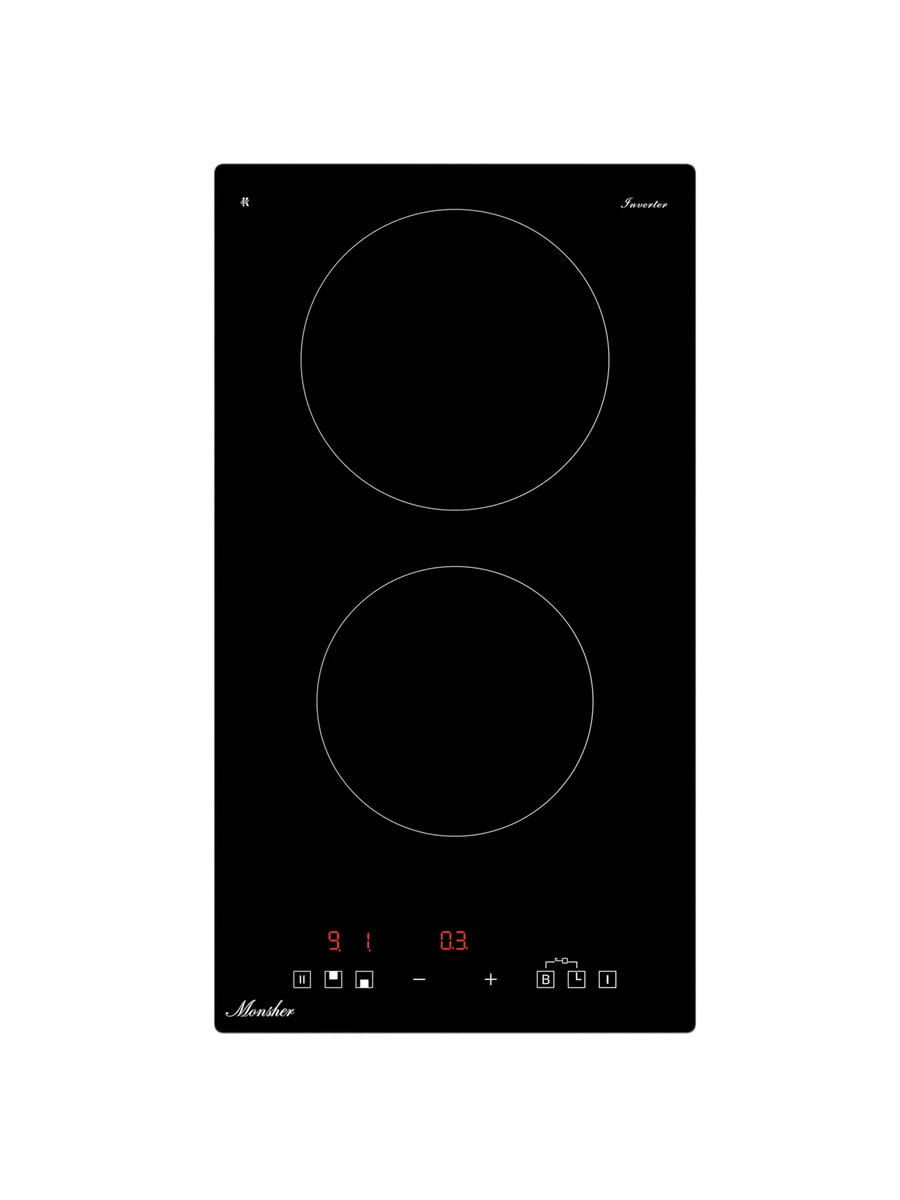 Индукционная варочная панель Monsher MHI 3003, High-Tech, индукция, 30 см, 2 зоны нагрева, inverter, сенсорное управление, 9 уровней мощности, автоматическое отключение, пауза, Booster, таймер, черный