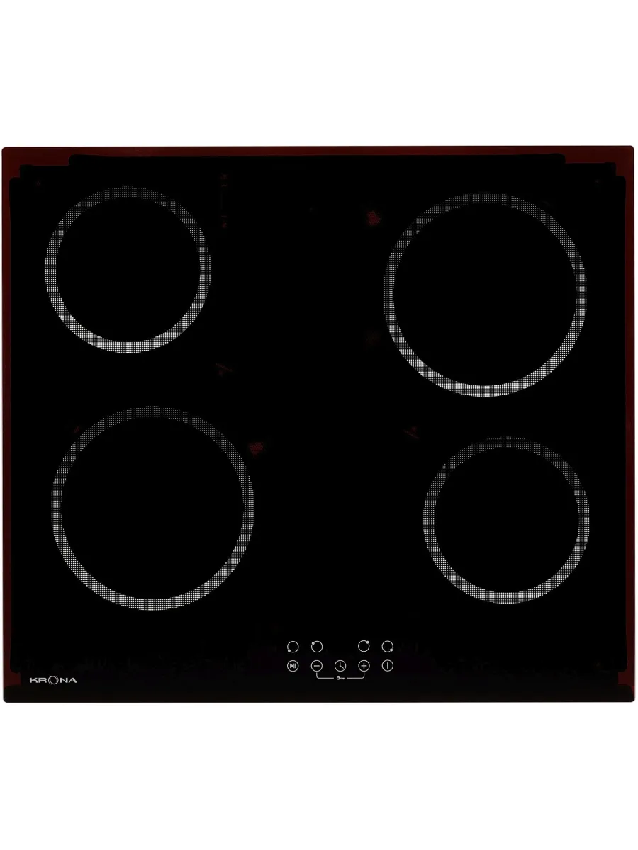 Электрическая варочная поверхность Krona Asten 60 BL имеет четыре Hi-Light конфорки на стеклокерамической панели черного цвета.