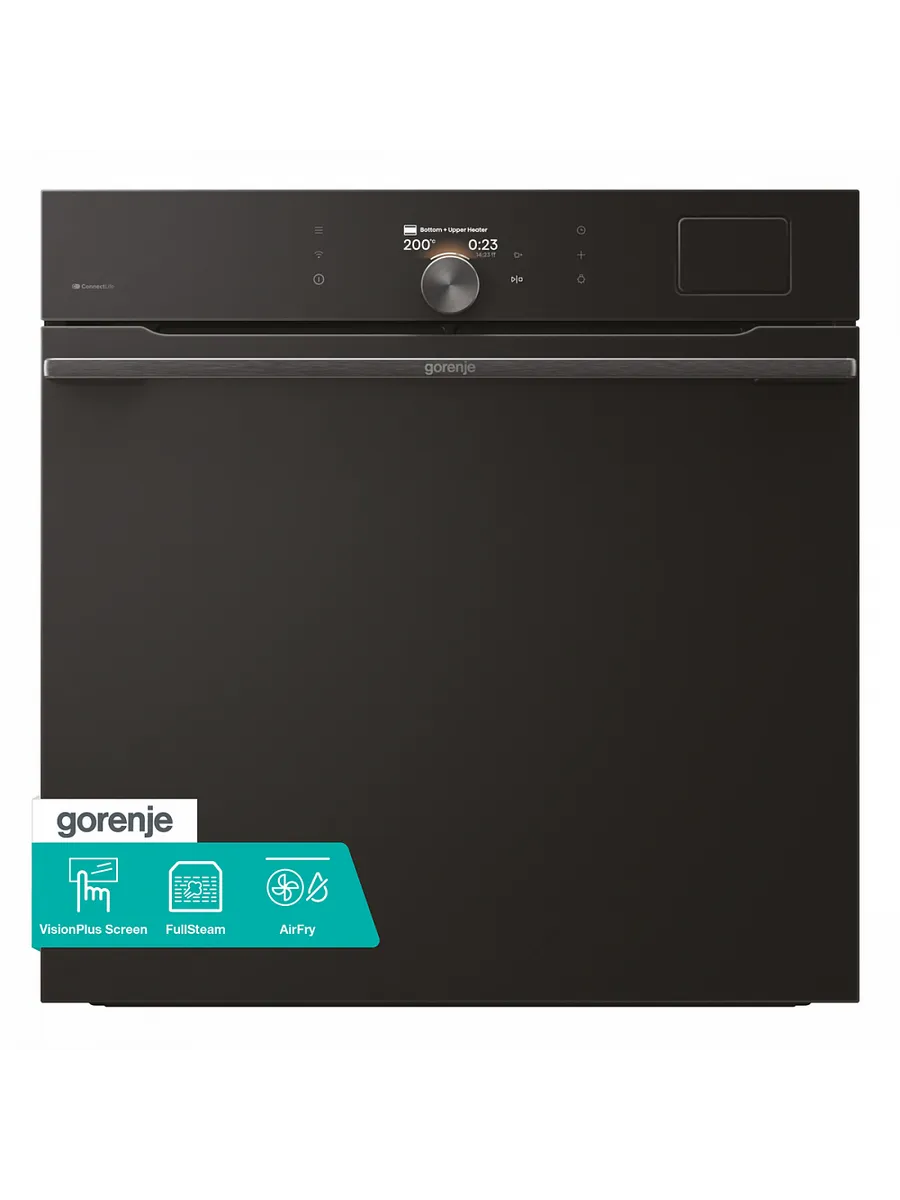 Встраиваемая электрическая духовка Gorenje BFS6148B, объем 77 л, макс. температура 230 градусов, сенсорное/поворотное управление, Wi-Fi, пар (FullSteam), сувид, AirFry, автоматические программы, телескопические направляющие на одном уровне, термощуп, динамическая система охлаждения, многоуровневое приготовление, PerfectGrill, энергоэффективность А+, черный