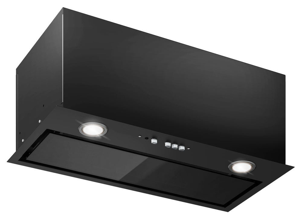 Описание: Встраиваемая вытяжка шириной 60 см. Производительность до 1000 м³/ч, уровень шума 54 дБ. Чёрный корпус, кнопочное управление, LED-освещение.